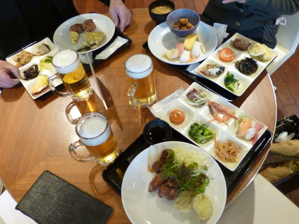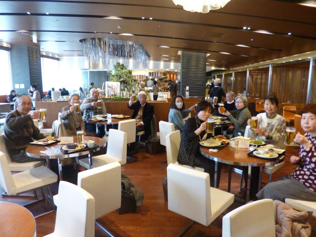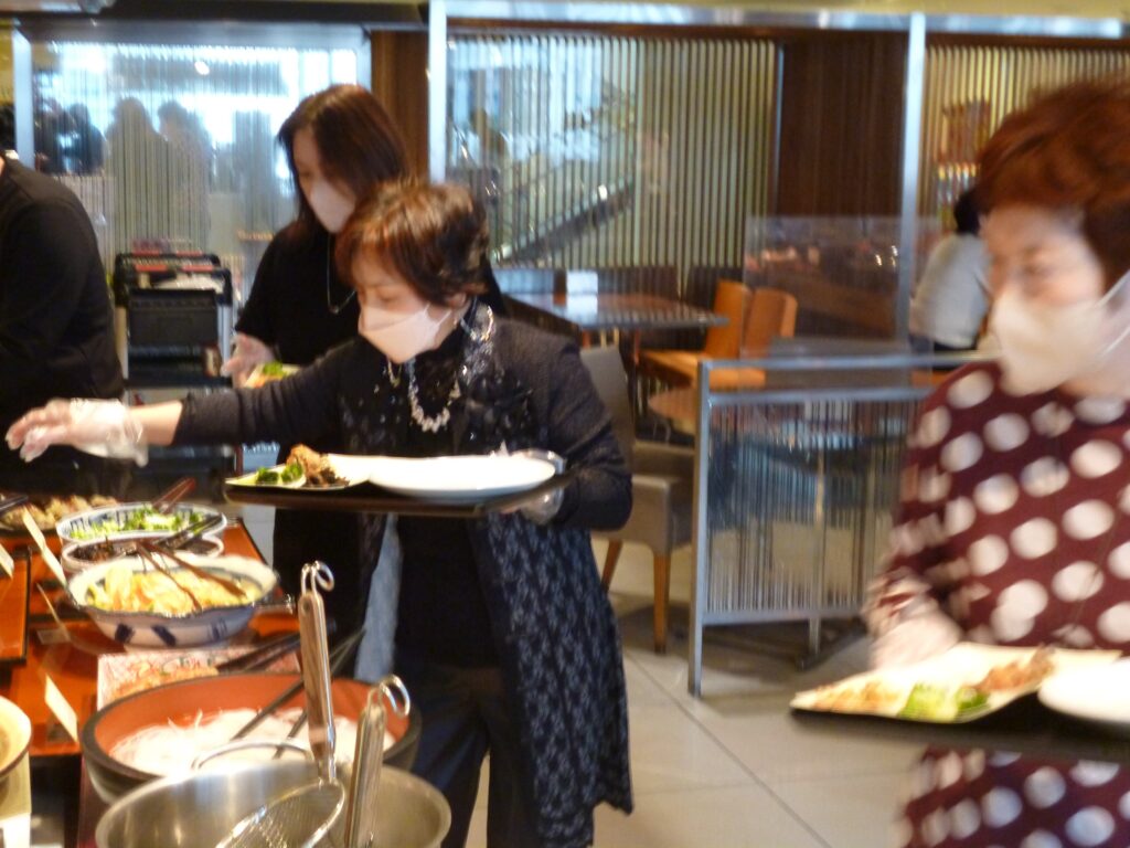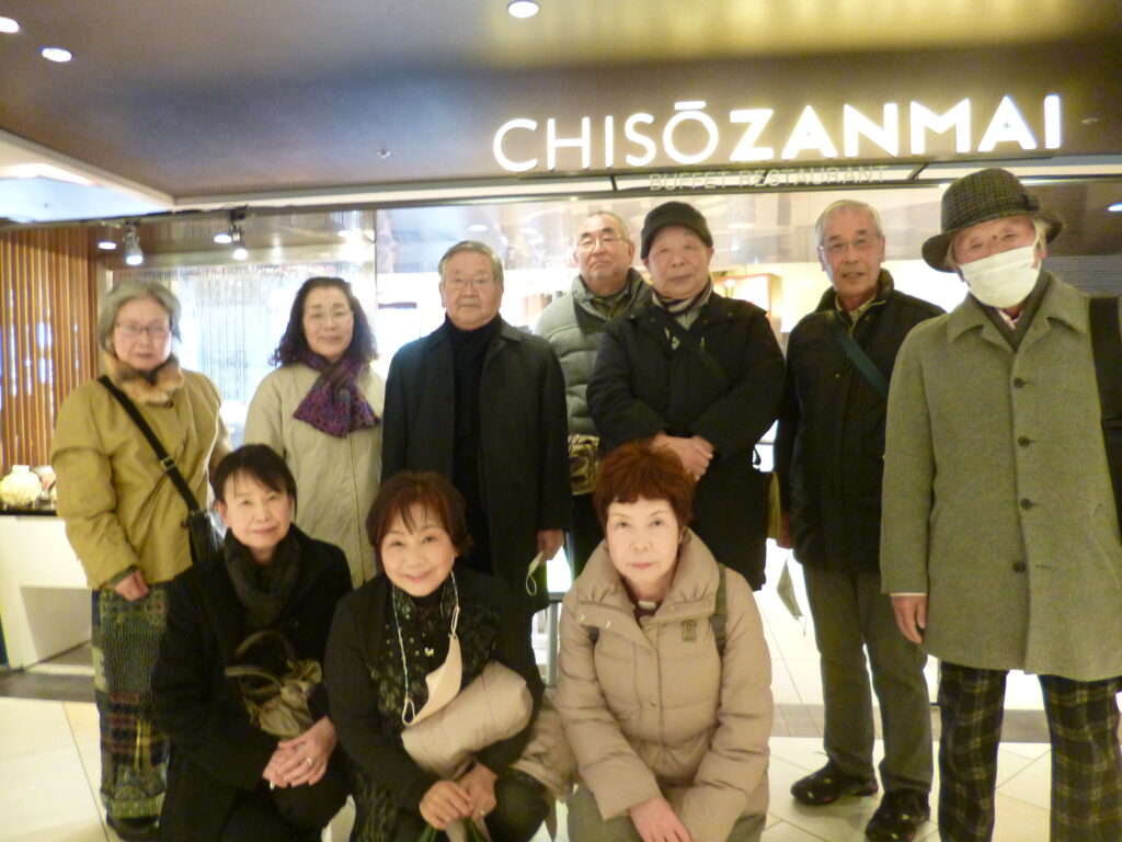 2月2日(木)2023年初の例会を開催しました。会場は大丸梅田の14階にある「馳走三昧」。和・洋・中のビュッフェスタイルで好きなものを好きなだけ、珍しい料理にもチャレンジ、美味しいお酒は選り取り、〆にはスィーツ・デザート等々2時間をたっぷり楽しみました。今回は体験入会の女性3名に参加いただき11名で盛り上がりました。