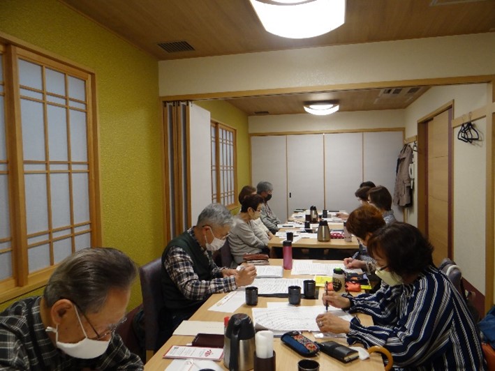 2023.04 俳句クラブ 春の吟行 北大阪支部 俳句クラブ 春の吟行 大阪城公園 令和5年4月7日 大阪城公園 極楽橋 句会を終えて 懇親会 すし半にて トレインに乗って 天守閣よりOBPを望む 天守と欅若葉 句会風景 すし半にて