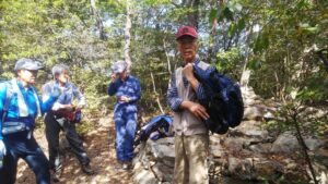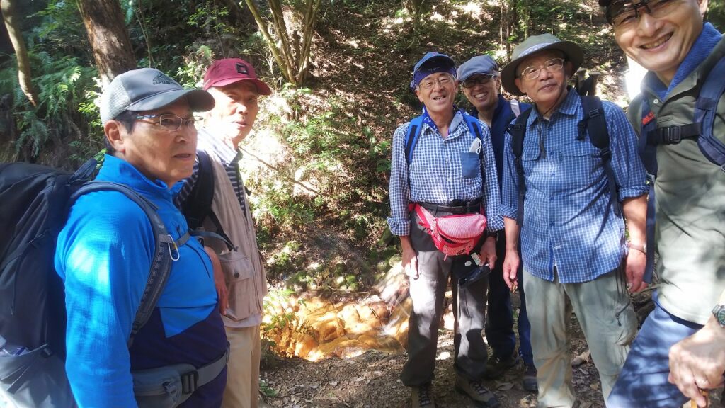谷筋ルートの途中には 岩の割れ目から噴水のように水が噴き出ていました。通称「しょん**岩」。皆で大笑い。?もかかっていました。