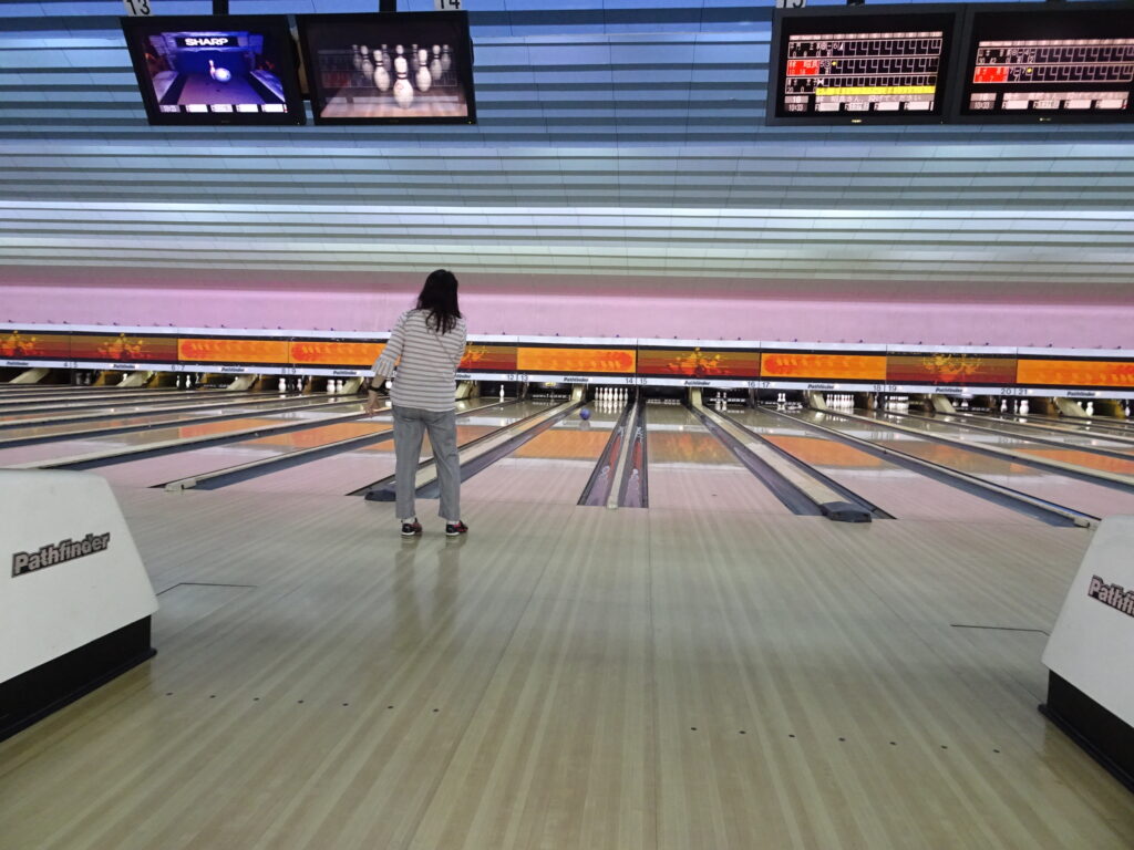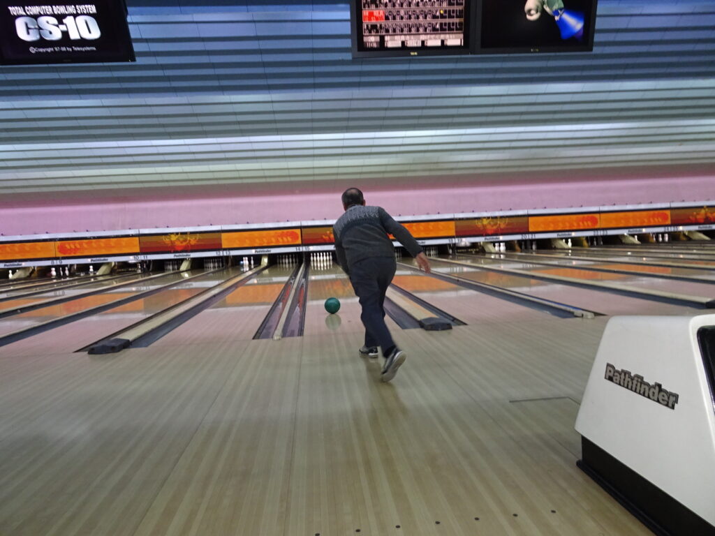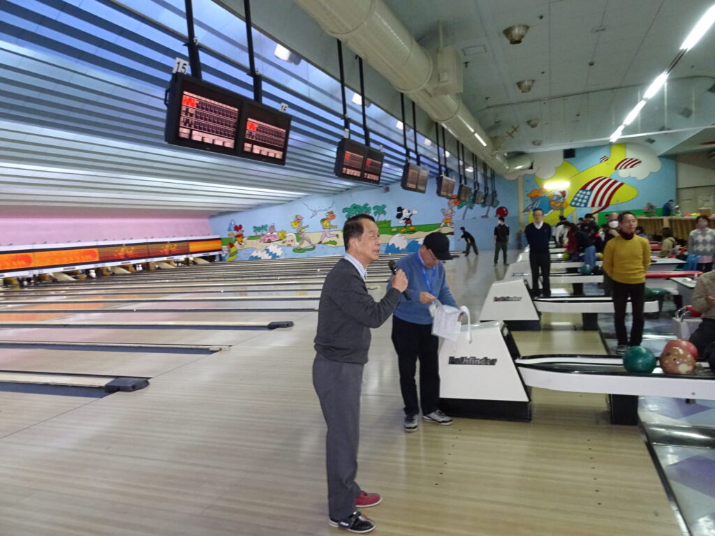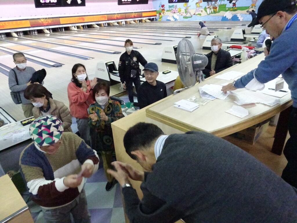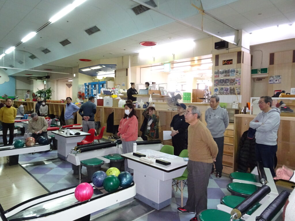 ボウリング場スタッフによるストレッチ体操・練習投球・支部長始球式に続き、安全第一で2ゲームの投球を終えました。主な成績は、