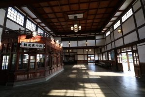 しかし、屋根には鴟尾やいろいろな亀の瓦が乗っている。また線路に降りる鉄板にはウサギが描いてあったり、急行や団体列車を受けたのでホームが長い。駅舎も和風建築でありながら、西洋建築(トラス構造)を取り入れているため、広い駅舎に柱がない。