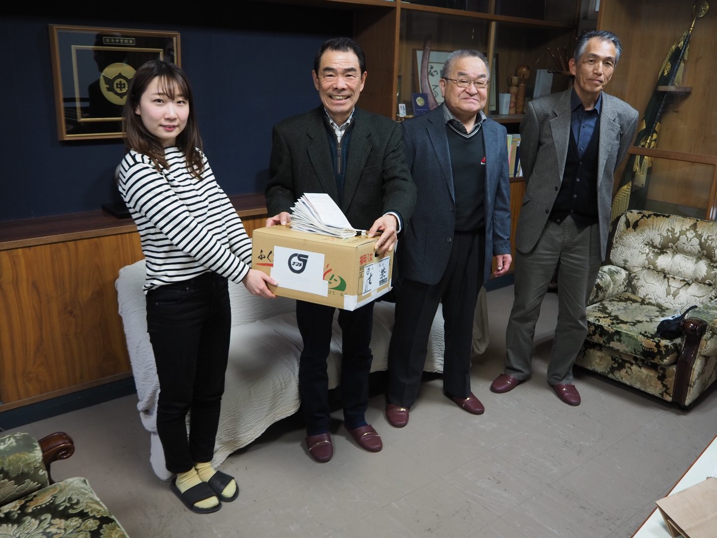 昨年までは、乃木公民館を通じての贈呈でしたが、今年は始めて、公民館を経由せず直接中学校への寄贈となりました。