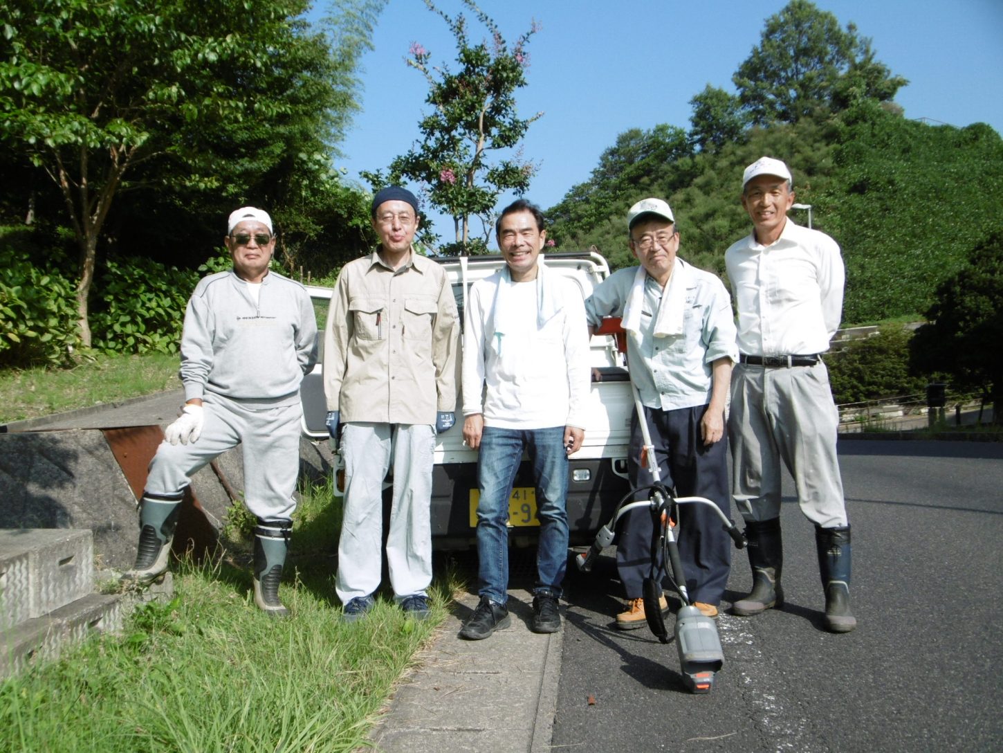 水分の補給、手指の消毒、虫よけのスプレーなど万全の対応をしながらの草刈りでした。