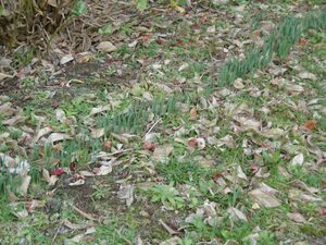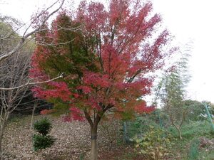 田和山の木々は大半が葉を落としていますが、その中で、モミジの紅葉の赤は