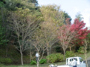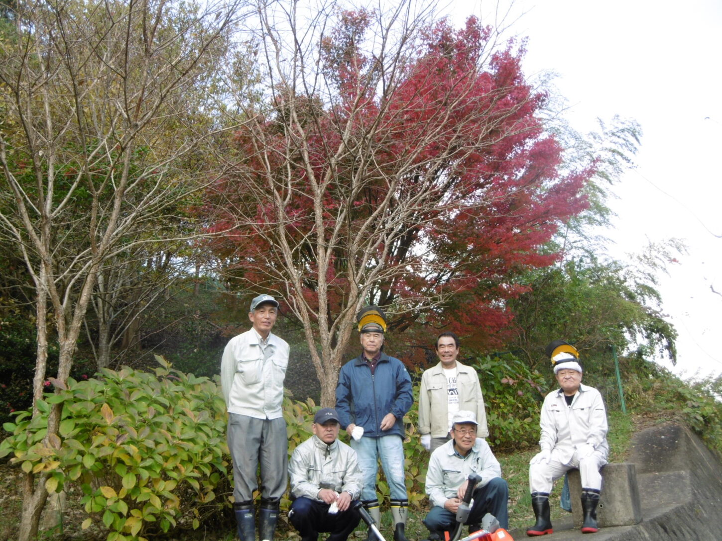 21年度最終の草刈りを、紅葉の中6人の参加で行いました。
