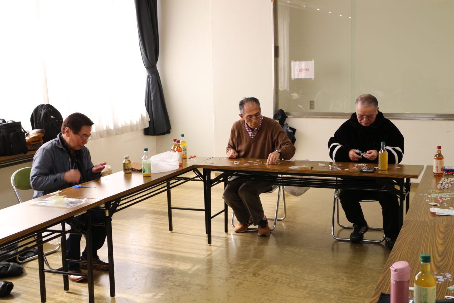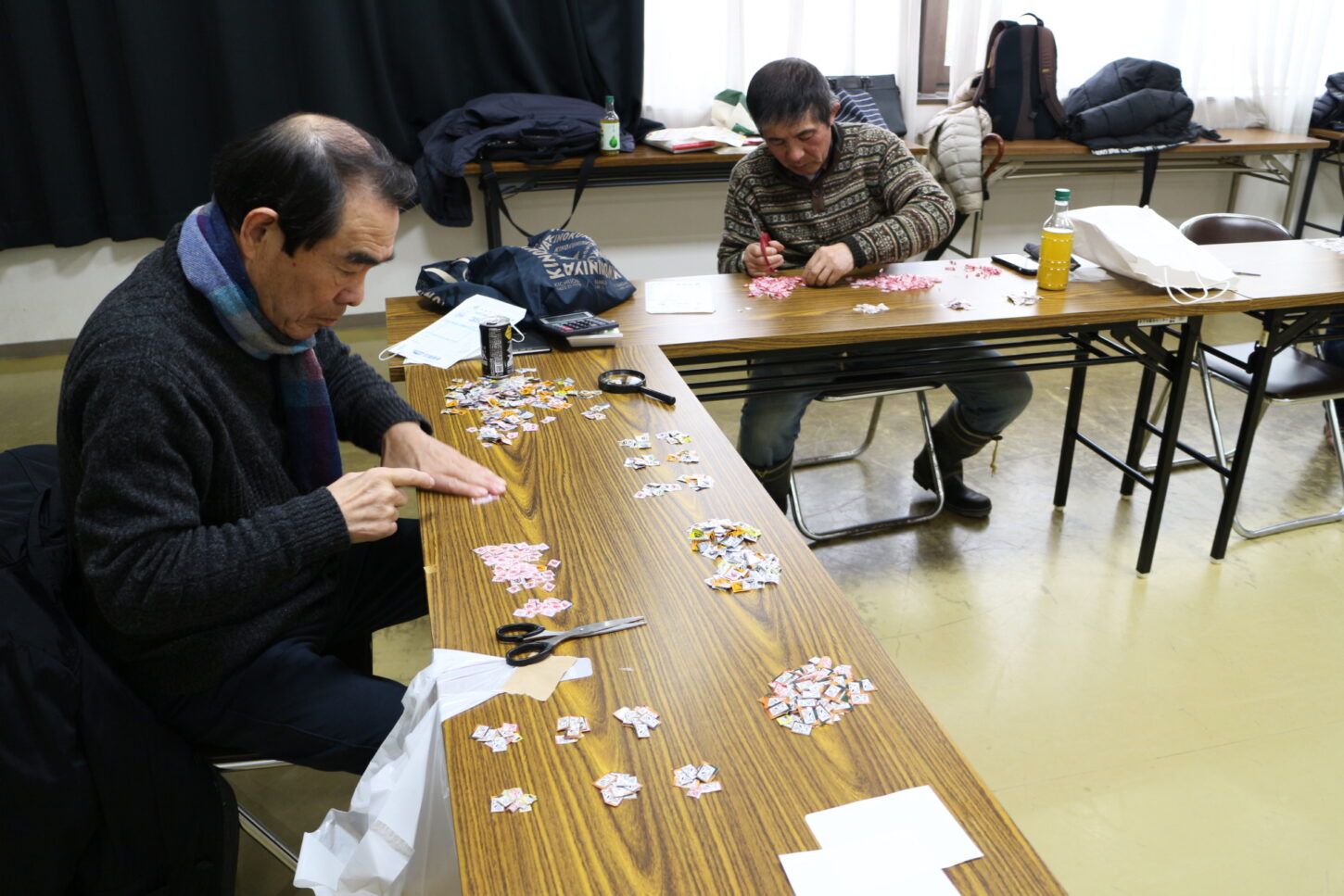 参加者は役員と世話役の6名、米子地区の応援の方々3名、総勢9名でメーカー別に仕分け⇒メーカー毎に点数区分⇒点数の計算⇒全メーカーの総点数の集計と約3時間をかけて全ての作業を終了しました。実績は1万点にもう一歩の9,645点で、前年の2倍になりました。危機感を持ち色々な場面でお願いをした結果ではないかと考えています。ベルマーク収集にご支援をいただいた皆さまに心より御礼を申し上げます。当日の朝は晴天でしたが、昼食の頃になると猛吹雪の様相で車の雪を落としつつ昼食場所へ移動となるなどしましたが、予定よりも早く終わり、応援をいただいた皆さまにも感謝しつつ2024年度ベルマーク集計のご報告といたします。
