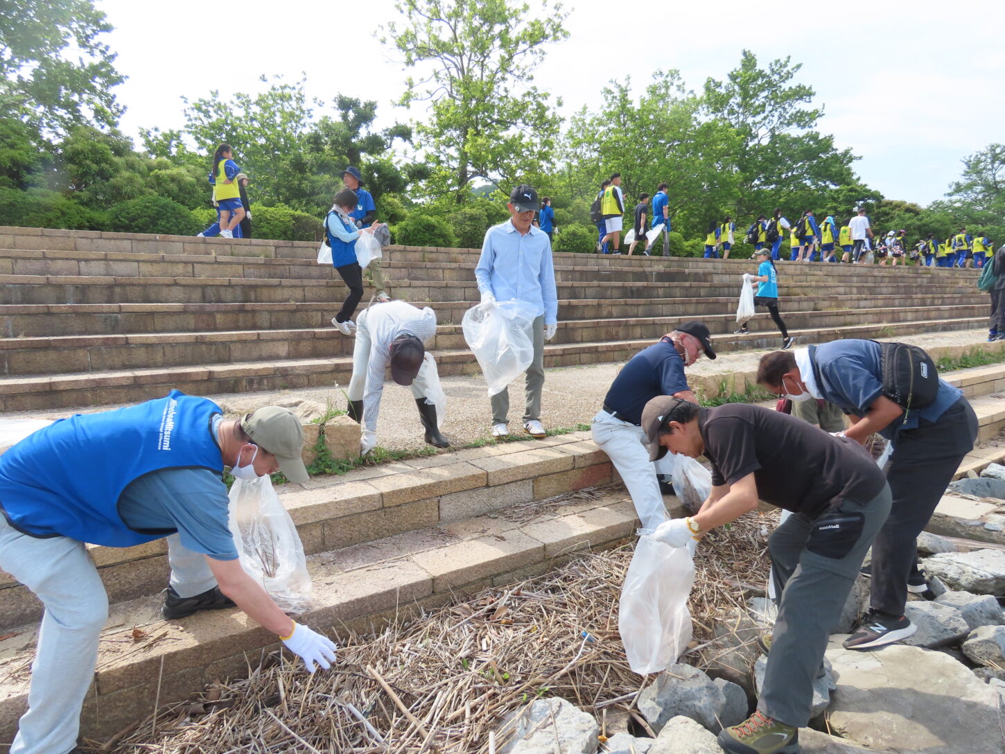 現役社員の人たちも参加していて清掃しながら情報交換の場となりました。