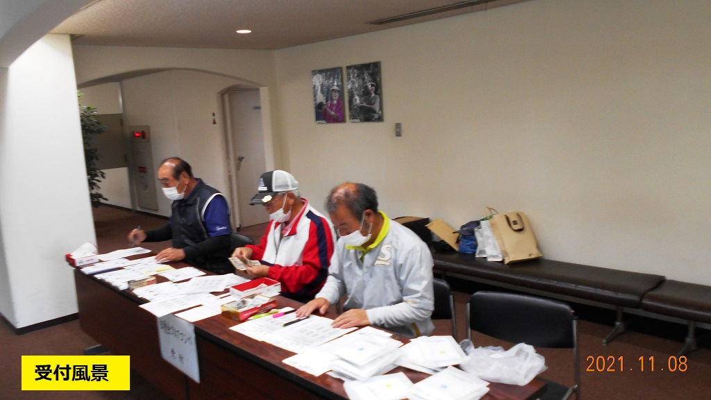 ③ 朝の受付時には、体温測定を行ったうえ、前回記念大会の記念品を渡すことからスタートしました。また、今回は今年度の最終戦のため、大会終了後に表彰式も行いました。