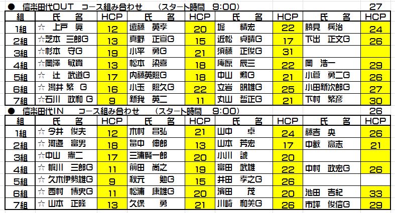 ④ 事務局からの連絡事項として、ベスグロ賞は年に1回のみ表彰する件、説明を説明して恒例の全員集合、記念写真を撮影し、OUT・INコースに分かれてスタートしました。