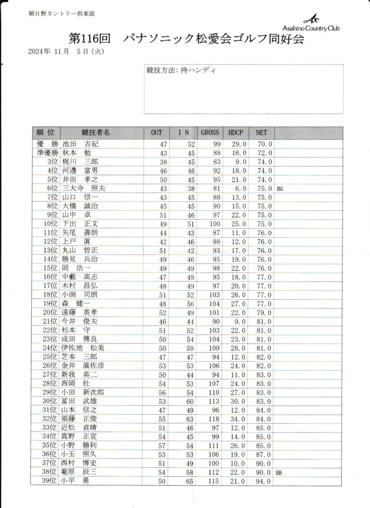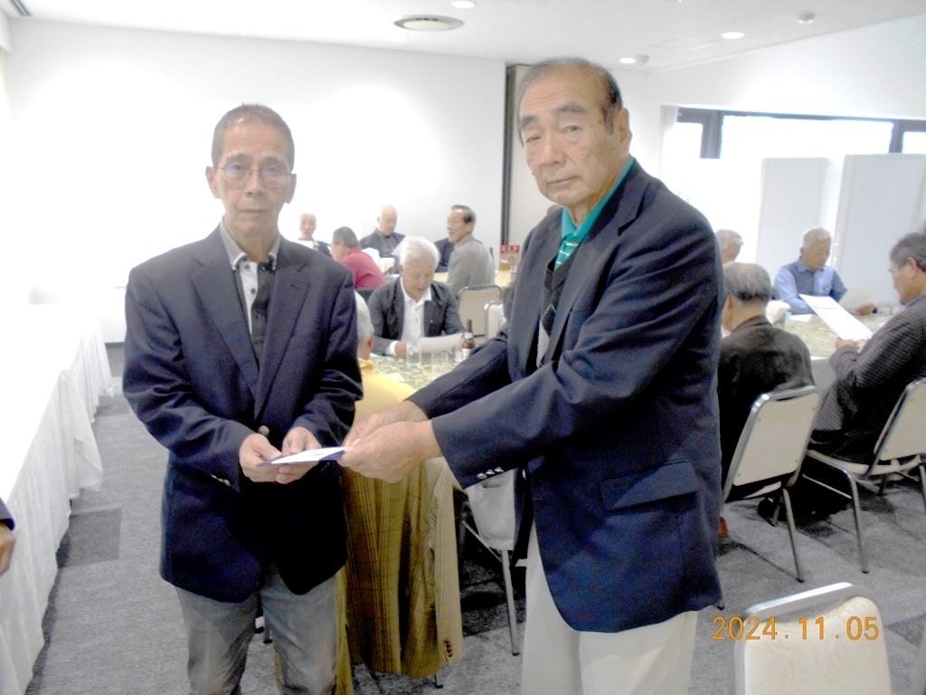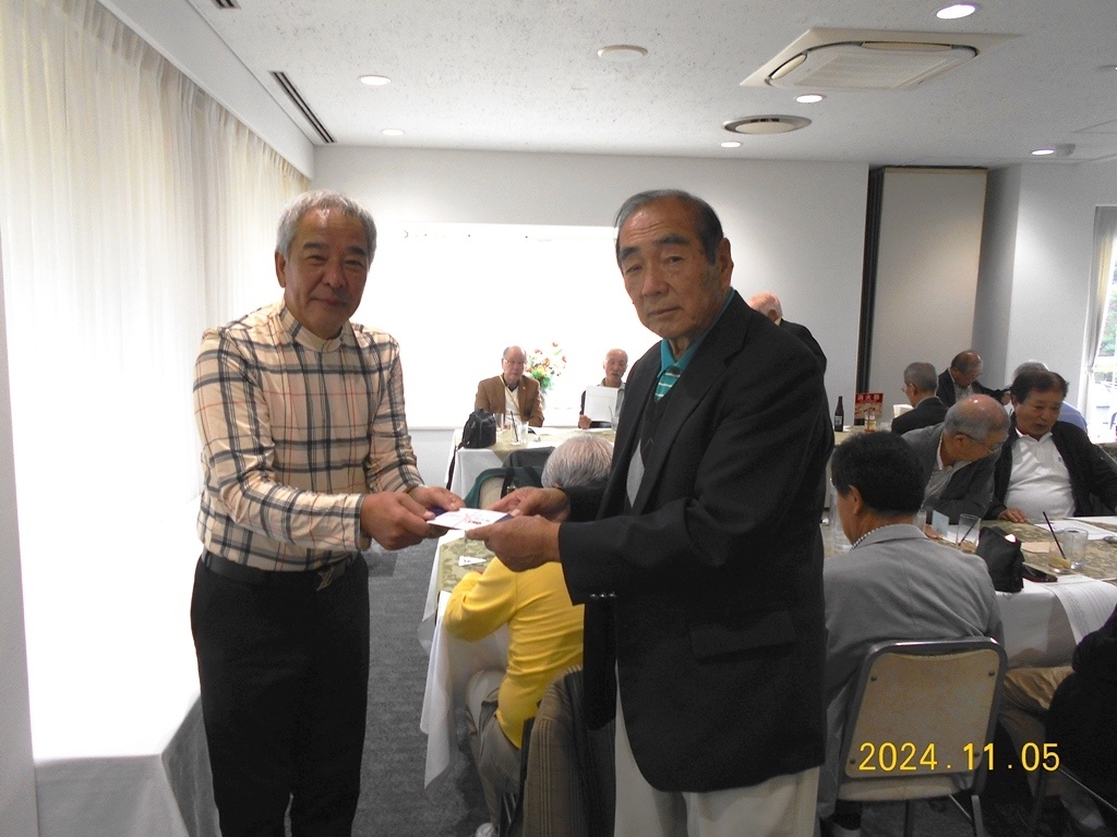 ③今回の参加者は39名と過去最少の人数となった。いろいろ個人の理由は聞いているが根底に今回のゴルフ場は他に比べ料金的に高い事も大きな要因と思われ次回以降のゴルフ場選定に反映していく。また、もう一つの要因として競技終了後の表彰式開催のため全員集合までの待ち時間が長いというクレームも聞いており運営の見直しをしていく。