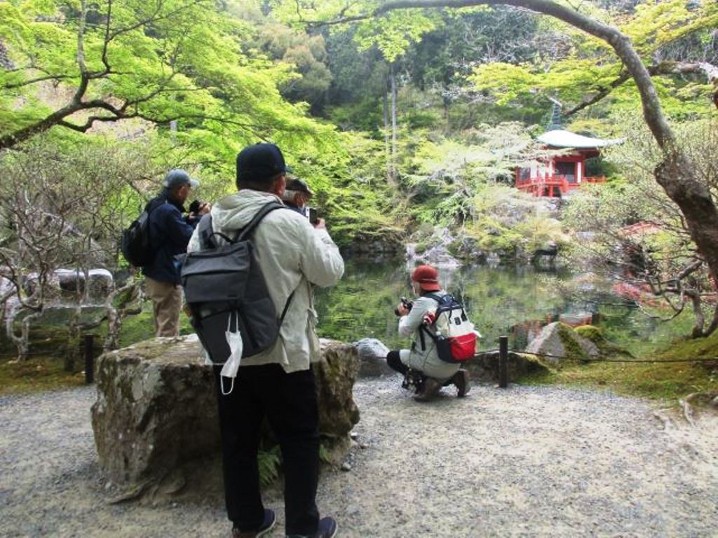 今年は桜の開花が早く、醍醐寺のピークは過ぎていて満開とはいかなかったが同好会メンバーのために健気に持ち堪えていた桜もあり、桜と新緑を各自愛用のカメラにて撮影に勤しんだ