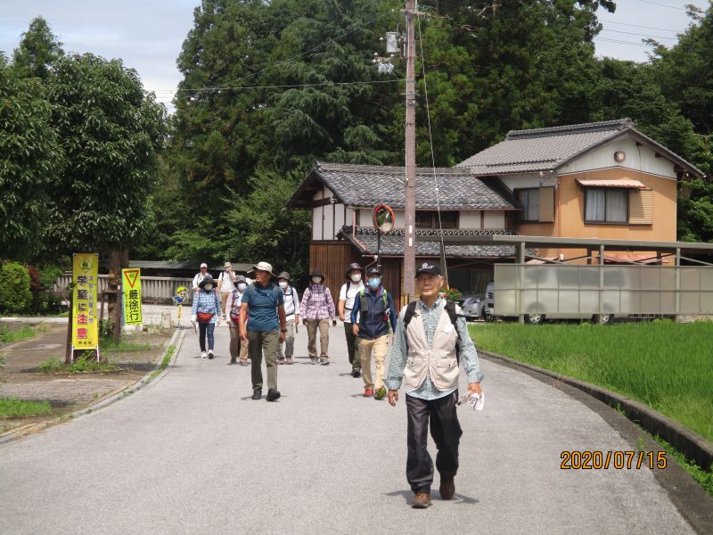 梅雨の合間の好天で予想以上の参加者となり、安全面と感染予防のため2班に分けて行動する。