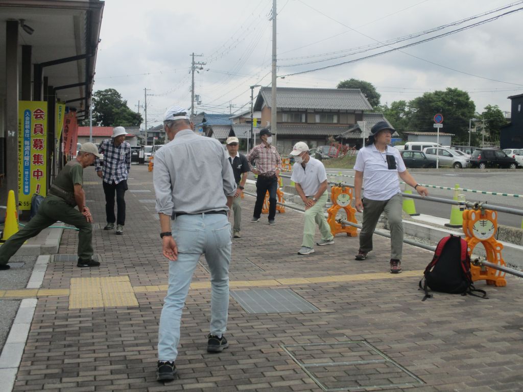 ○10:20 JR坂田駅前集合、駅前にて本日のコース説明、ストレッチ体操を済ませ出発。