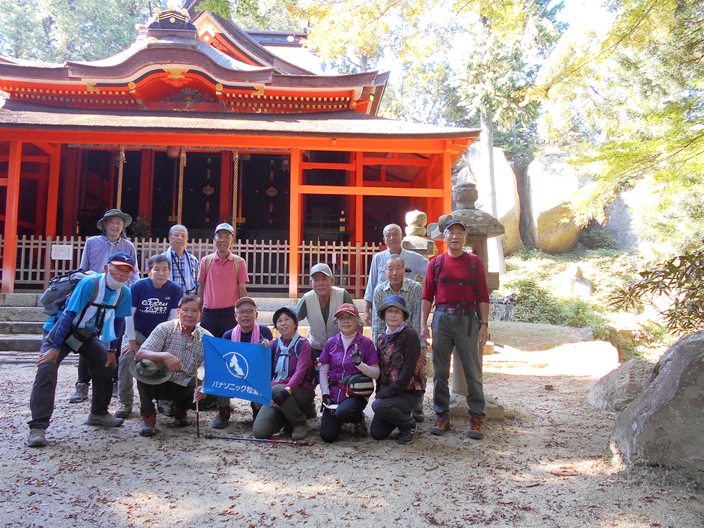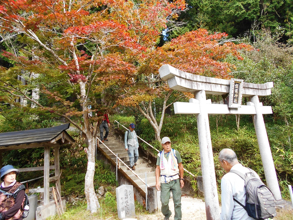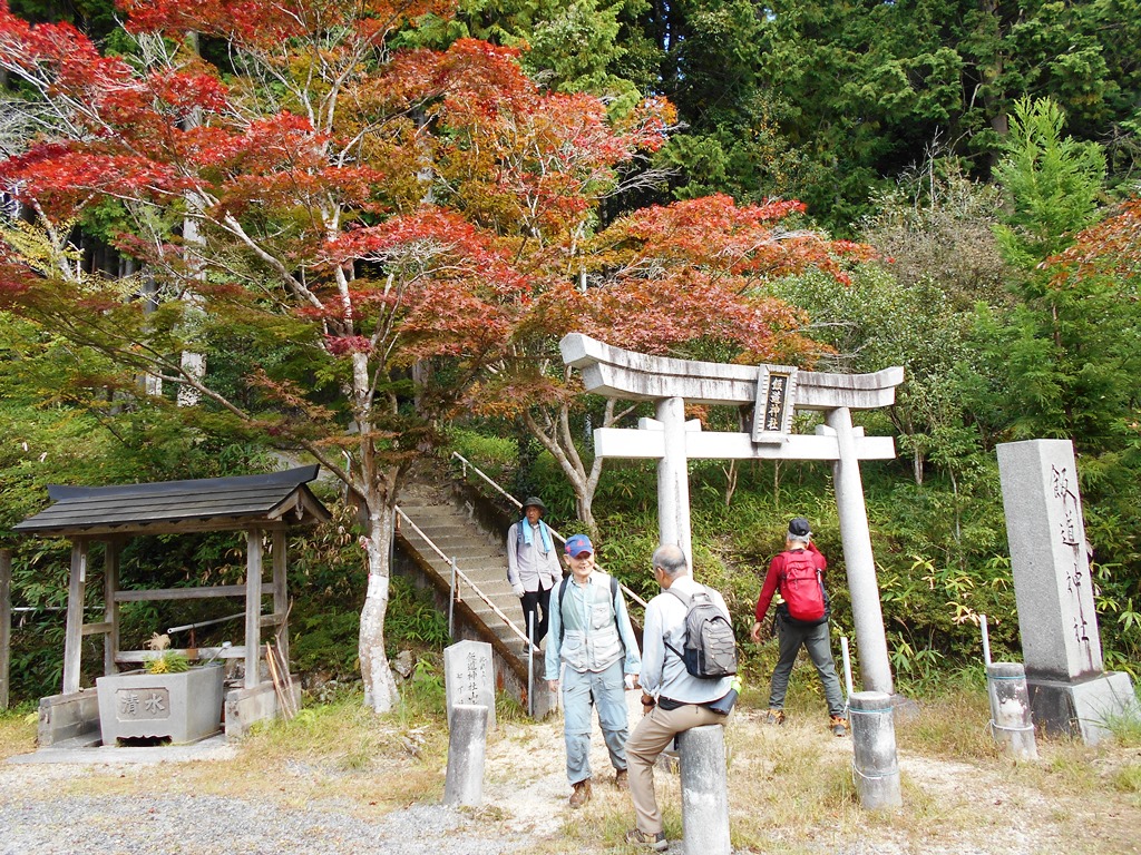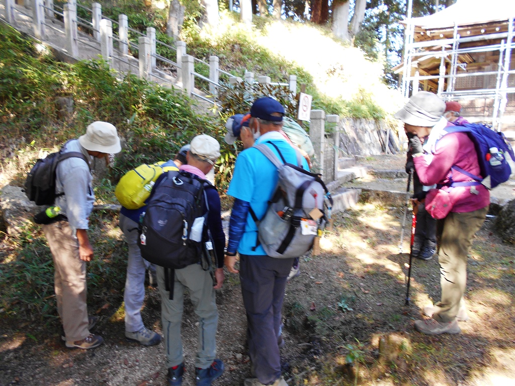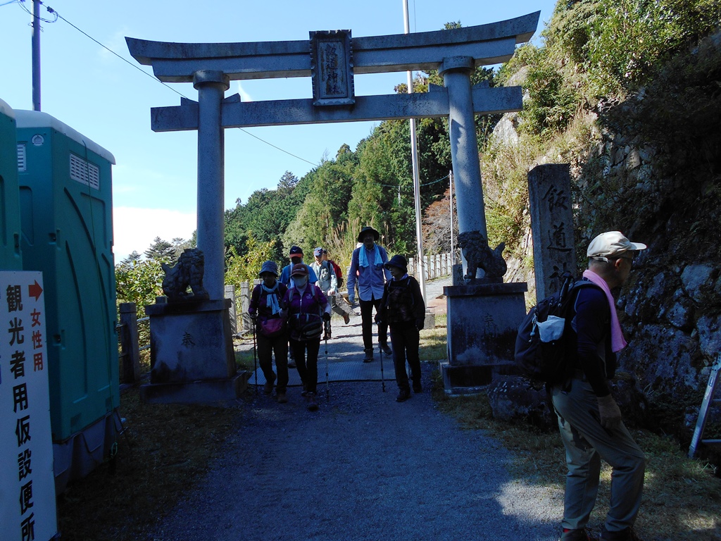 ○飯道神社組は一足早く神社に到着し、山頂組の合流を待つ。