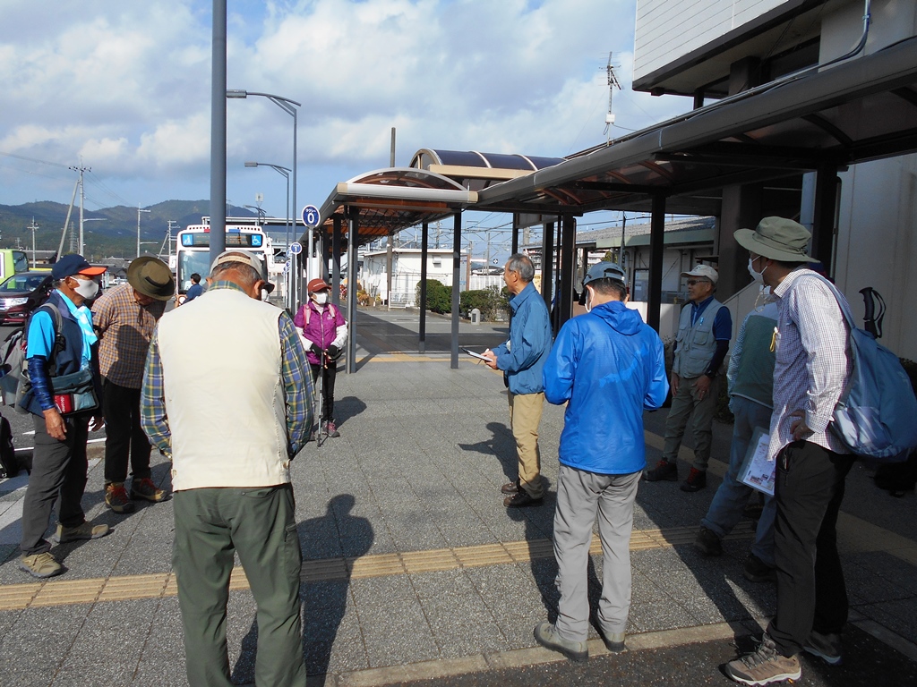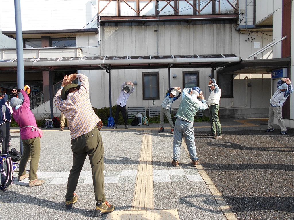 ○駅前で本日のコ-ス説明とストレッチ体操を済ませ9:20出発。気温 山頂18℃