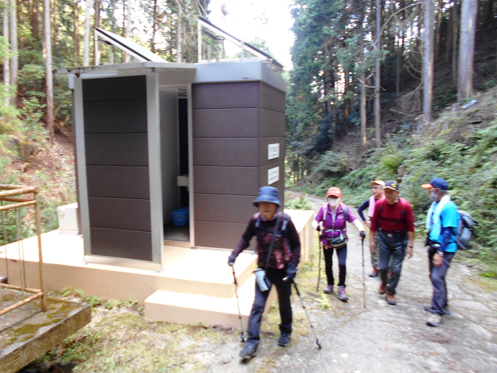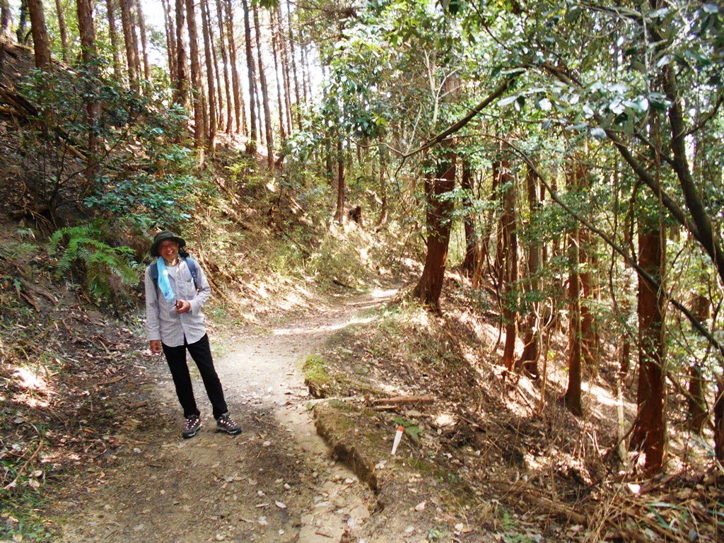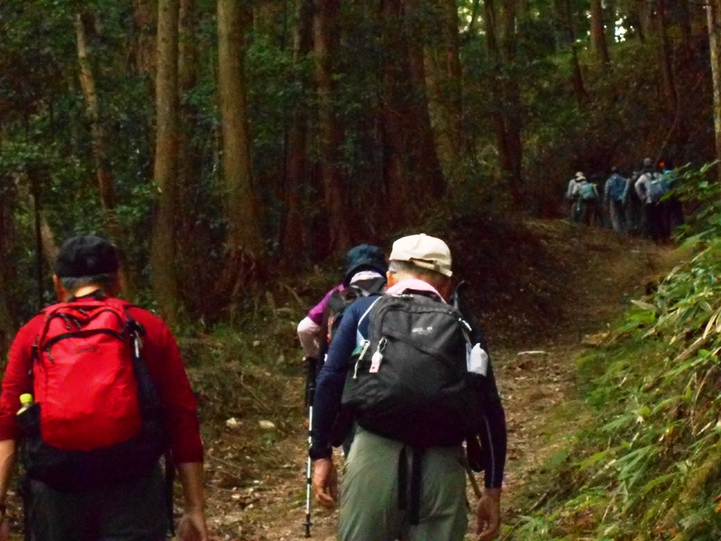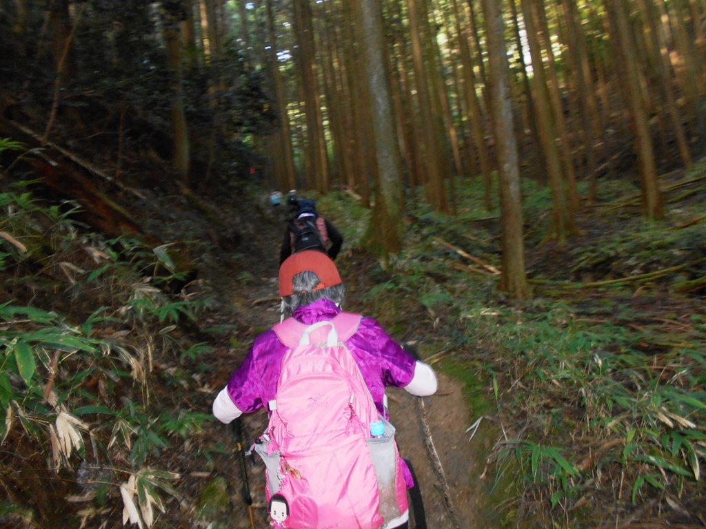 ○苦行坂を喘ぎながら、30分で休憩所に到着。小休止を取り峠の”杖の権現”に向け急坂を登る。