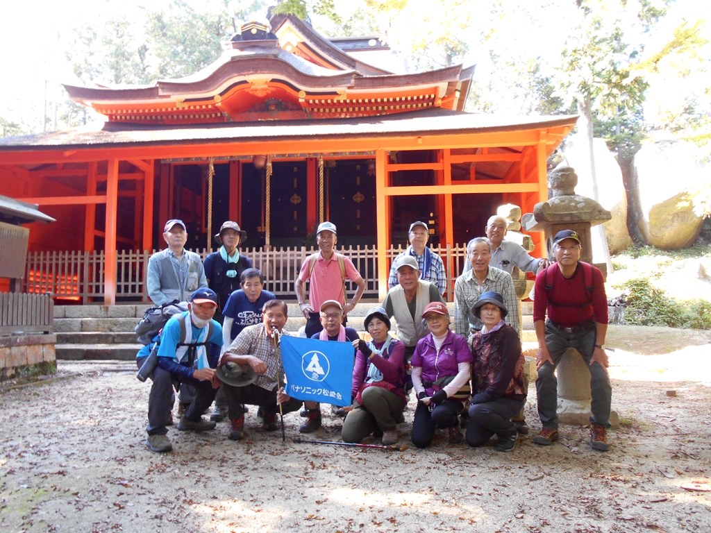 ○飯道神社で記念写真を撮り、昼食タイムとする。
