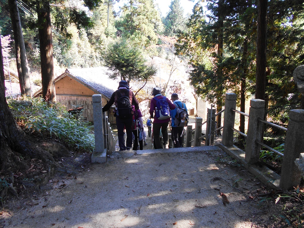 ○山頂組は記念写真後下山を開始し、12:25飯道神社で先行組に合流する。