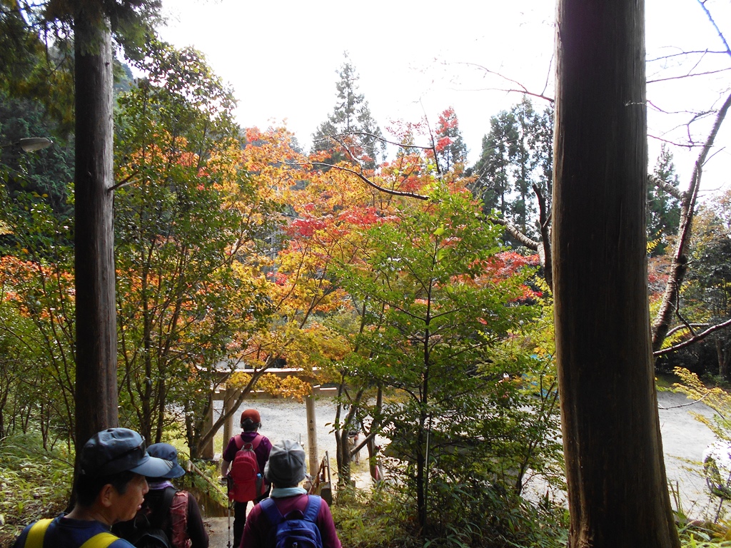 ○杣川を渡り、稲刈りの終わった田んぼを見ながら、緩やかな坂道を登り飯道寺に9:50着。