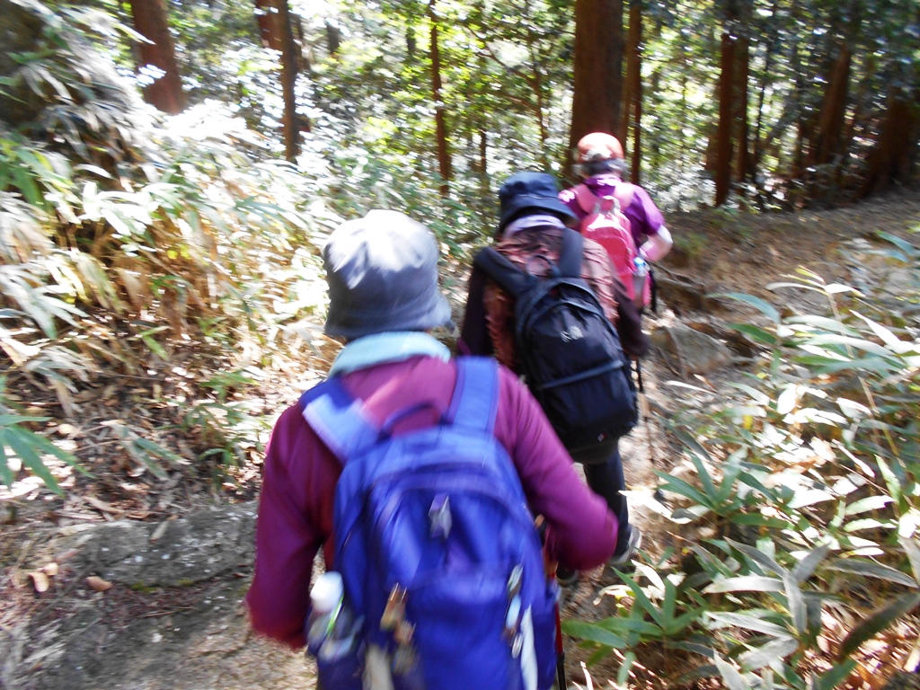 ○山頂組と飯道神社直行組に分かれて行動。山頂組は11:45登頂を果たす。