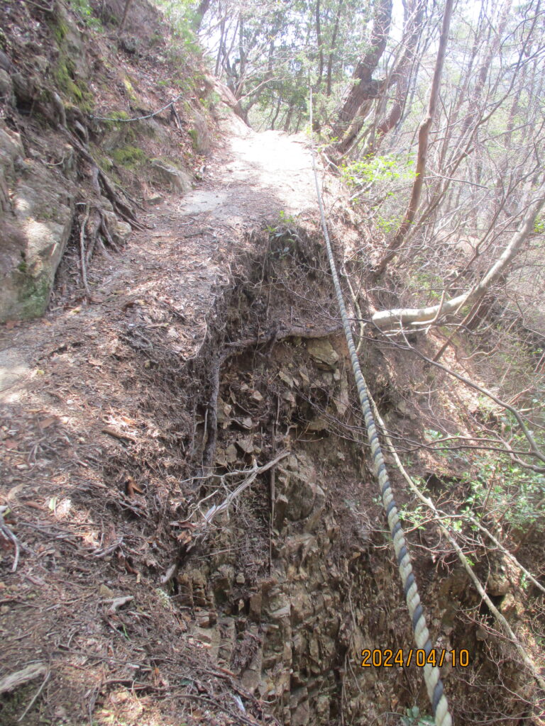○来た山道(ガレ場)を下る 滑らない様注意して下る。涼峠分岐着13:00。
