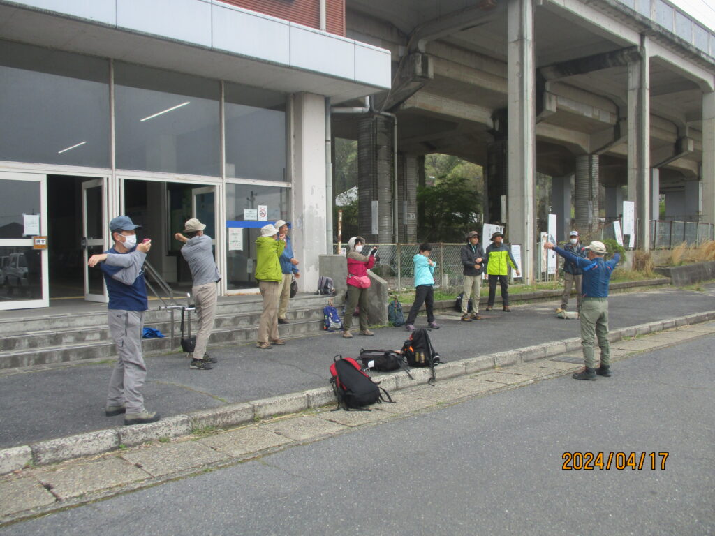 ○駅前で本日のコ-ス説明とストレッチ体操を済ませ9時40分出発。