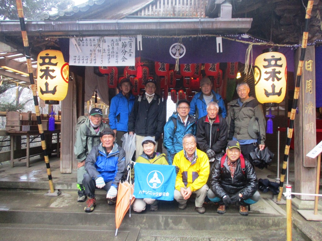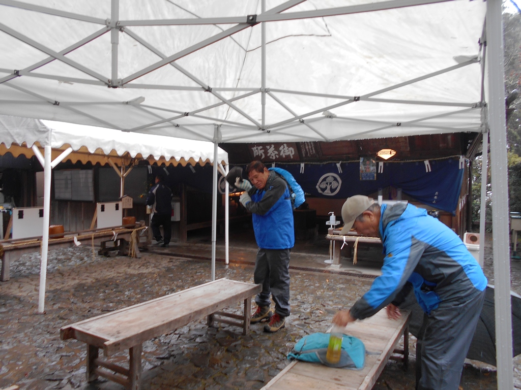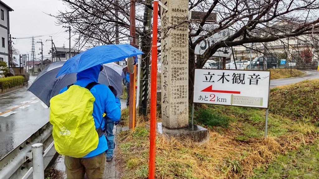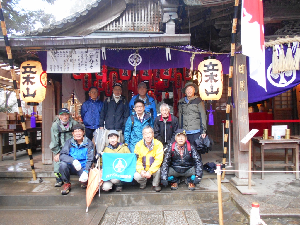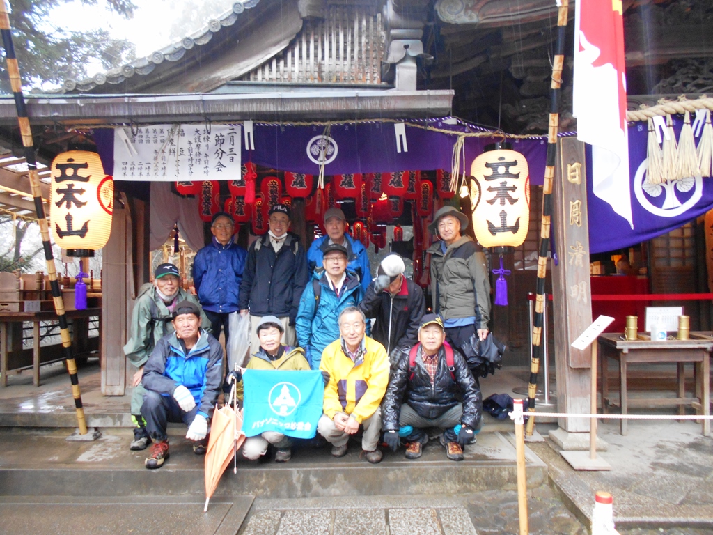 ○12時15分 立木観音境内に到着し、参拝後神職さんに許可を得てテントの下で昼食を摂る。お茶・ゆず茶の接待もあり心も温まる。