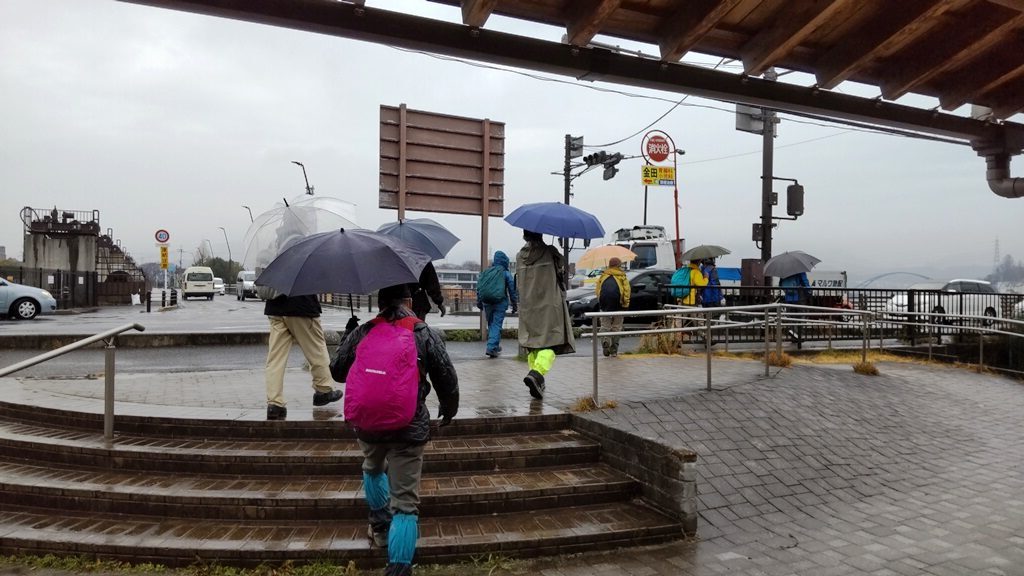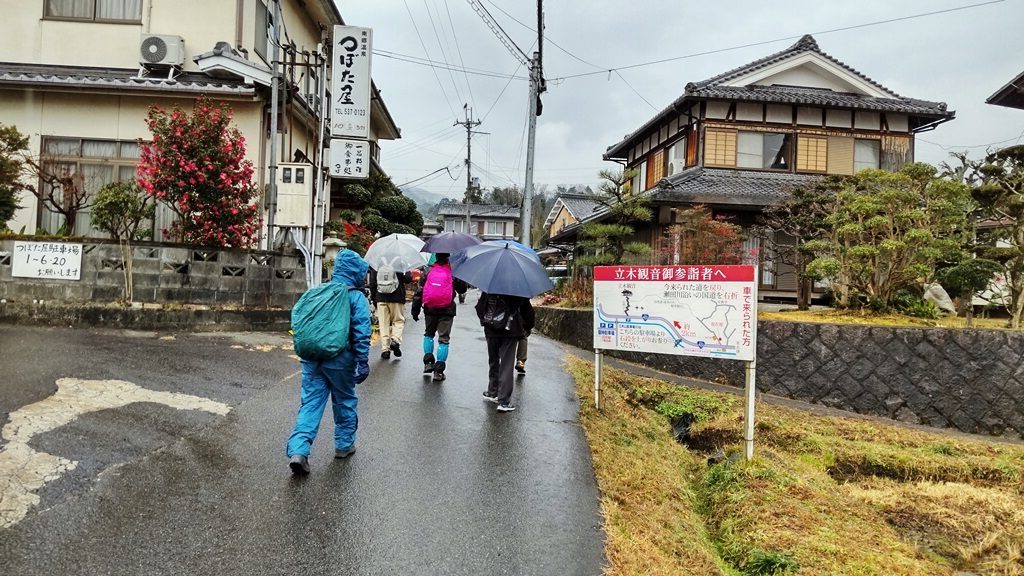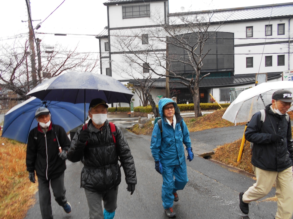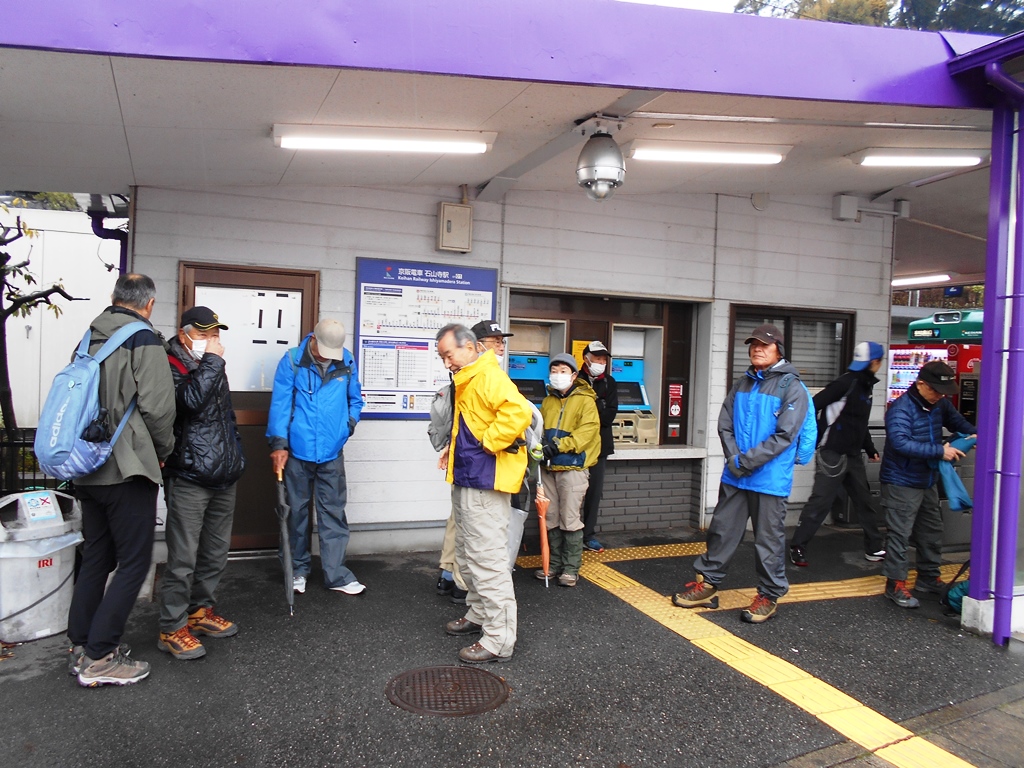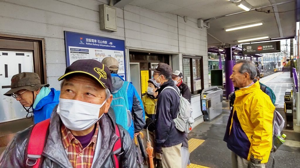 ○10時00分 京阪石山寺駅に集合。 代表挨拶、本日の行程説明後出発する。小雨模様なので恒例の準備運動は省略し平地歩きをしながら体をほぐすことにした。
