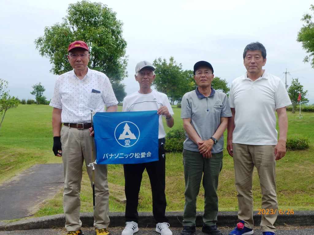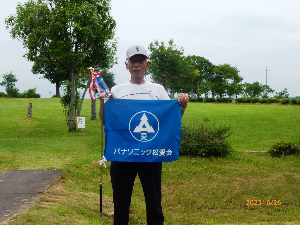ホールインワンの左から沢邉さん、上坂さん、川西さん、久木さん