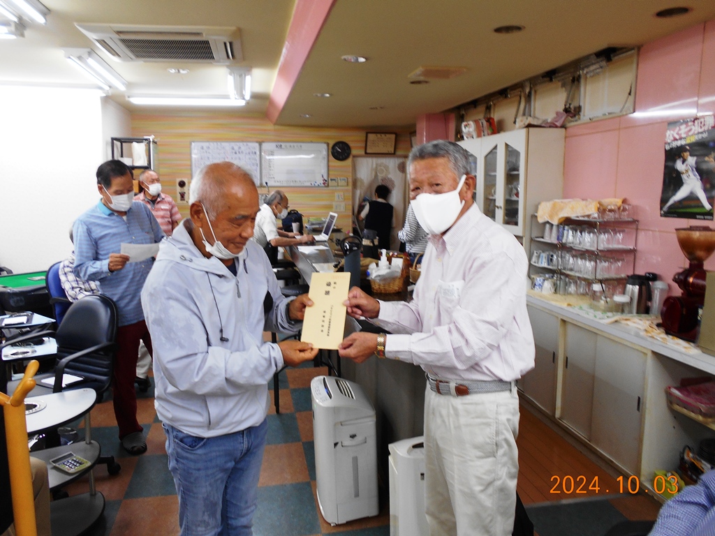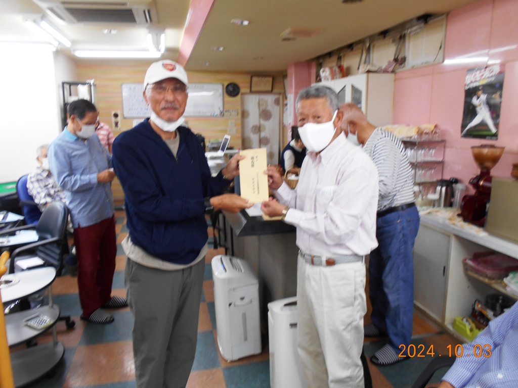 ③最後に、本日で18年間、麻雀同好会で活躍された太田さんが残念ながら退会されました。お疲れ様でした