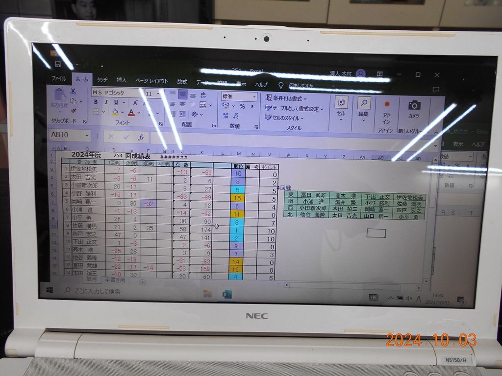 | 2024年度 85期 成績表(半チャン最高得点者に2ポイント付加) | ||||