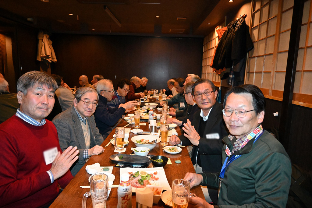 おいしい料理を肴にアルコールが入ってくると話が盛り上がり大変賑やかな雰囲気で宴が進められました。特に今回は、エアコングループや掃除機事業部以外に半導体やマーケティングなど色々な職場の在籍経験者が多くおられたこともあり、昔の職場や共通の知人の話題で時間を忘れて話が弾んでいました。