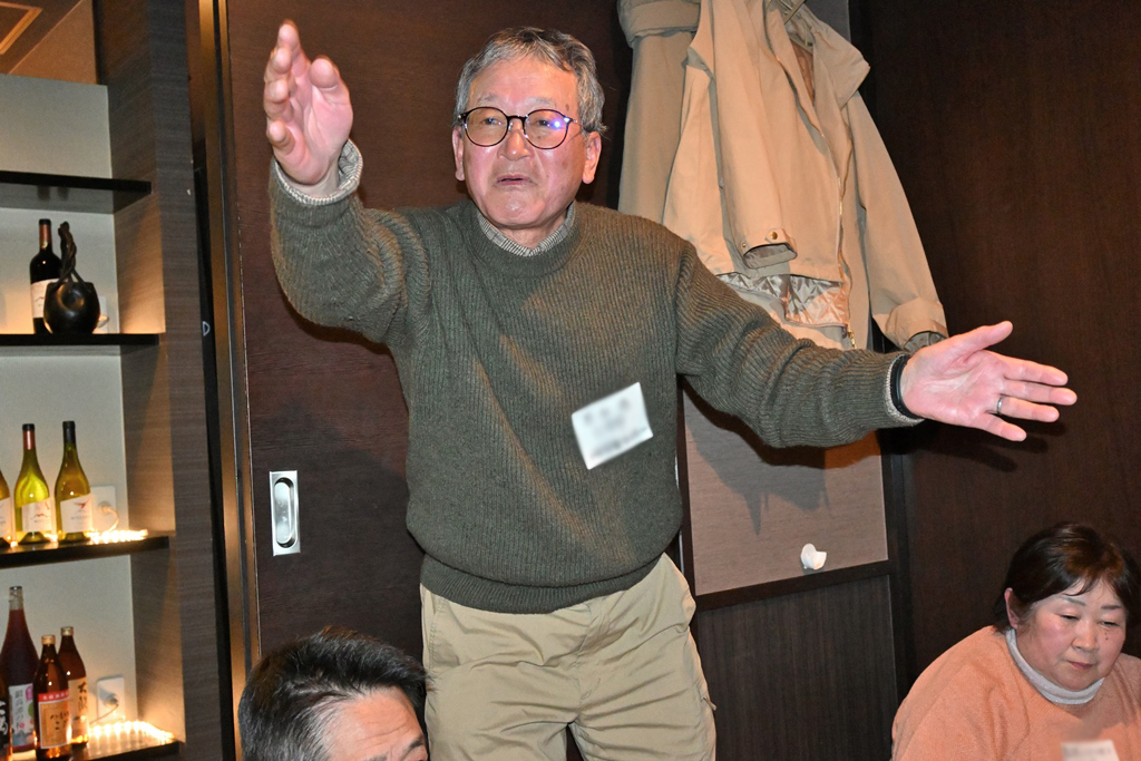 旧知の会員の他、新しく支部の行事に参加された会員もいて、花澤副支部長の挨拶と乾杯から懇親会をスタート。