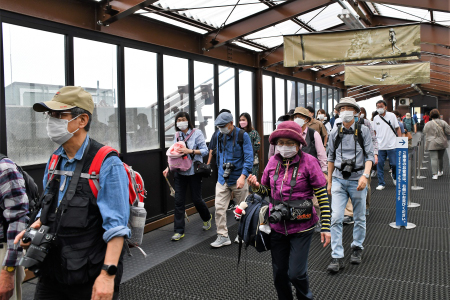 | 14:00頃 | ロープウエイの山頂駅乗車を急遽早めて山麓駅に向かう (ロープウエイ山麓駅降車後は、1時間に1本のバスにため早める) |