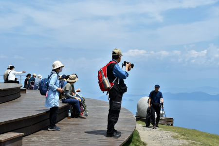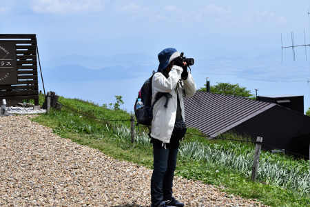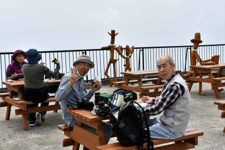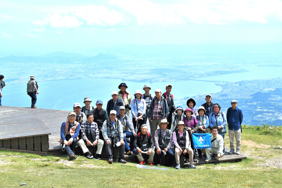 ・それでも「びわこテラス近く」と「蓬莱山山頂」で集合写真を撮り、各人雄大な琵琶湖を