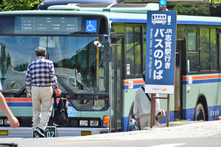 - バスで志賀駅経向かいます
