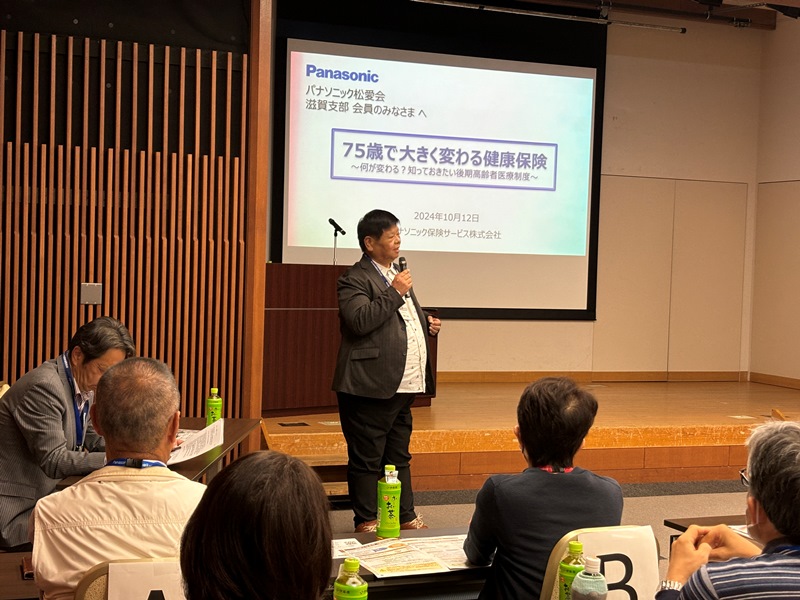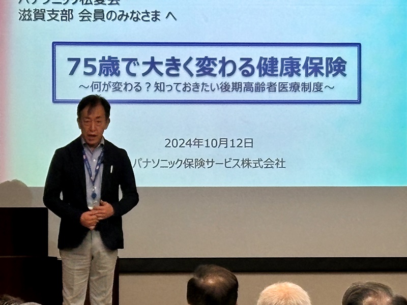 10月12日(土)にフェリエ南草津を会場に、第7回目となりました「75歳節目セミナー」を開催いたしました。当日は、本年度74歳を迎えられます会員対象に募集しましたところ、ご夫婦で参加15組を含め、64名の参加をいただき、75歳を機に変更となります健康保険、生命保険、及び運転免許更新などの制度上の変更点や人生100年時代を如何に健康に過ごすかの秘訣や留意点などをセミナー内容とし開催いたしました。