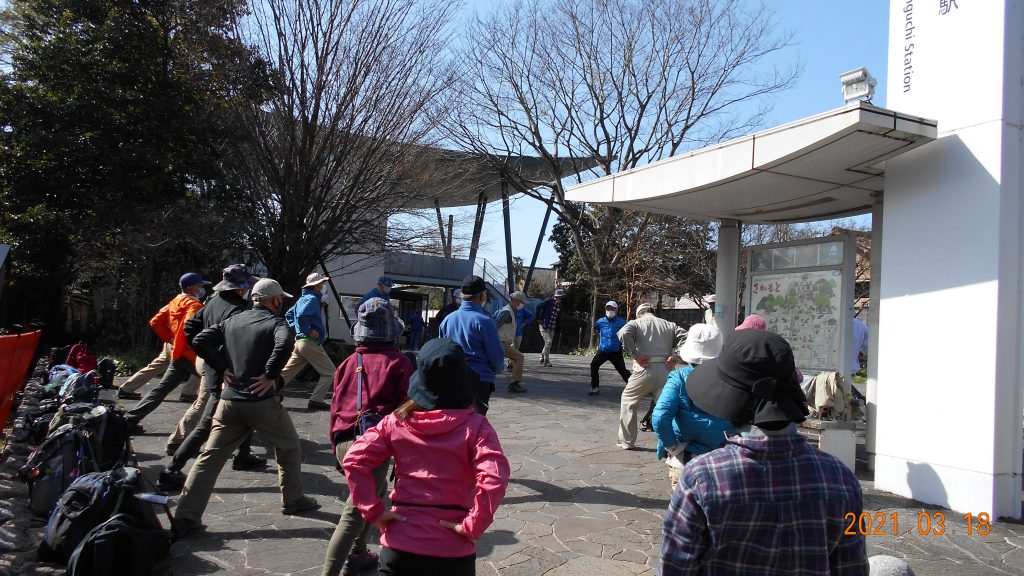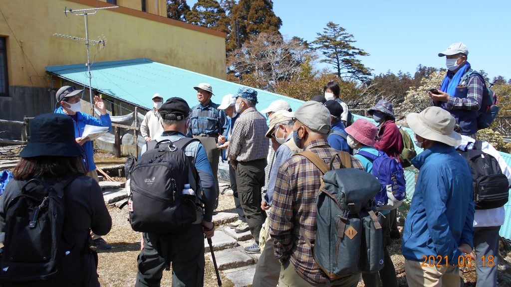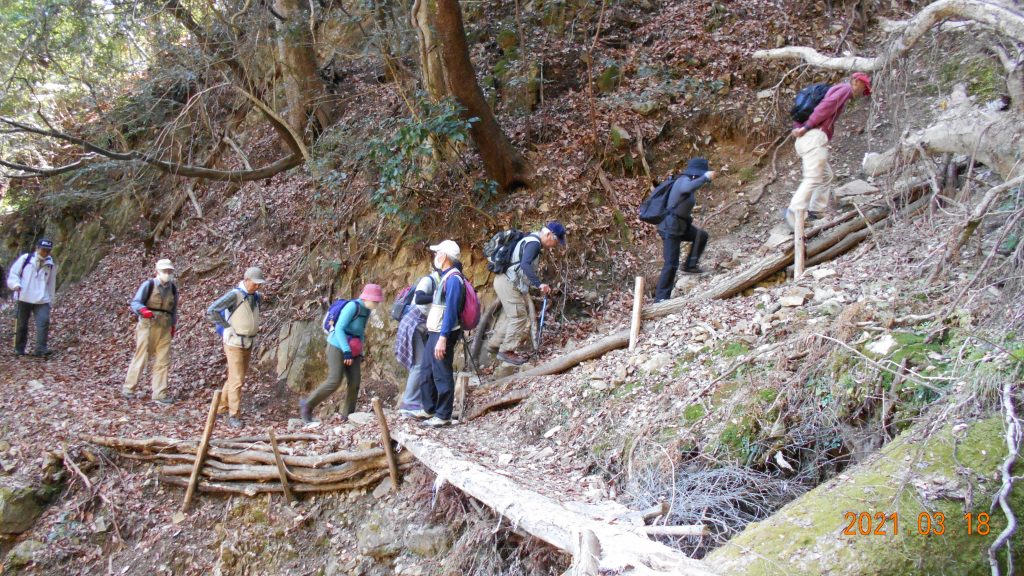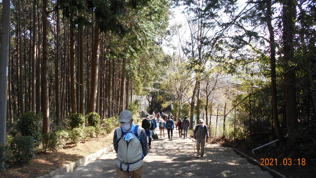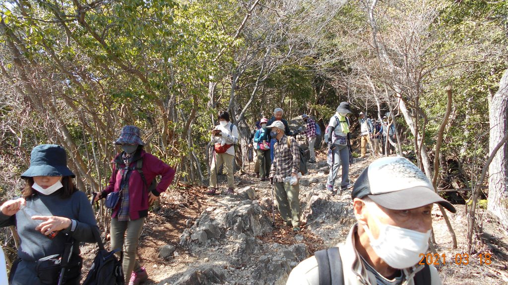 コロナ感染予防で1月.2月の活動を中止、今回は久しぶりの歩こう会でしたが好天に恵まれ少し汗ばむ程の登山日和でした。