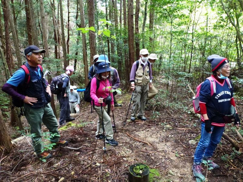 ◎今年度初めての例会、この秋一番の寒さの中少し厳しい山道を全員無事踏破出来ました。