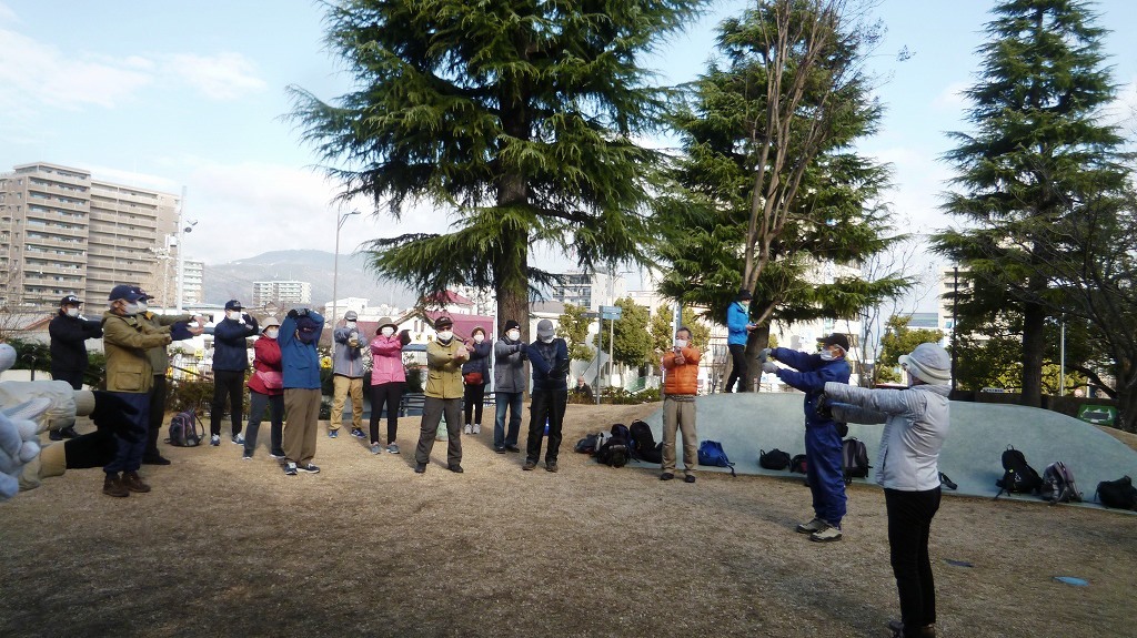 ・10:00JR大津駅前集合、近くの児童公園に移動し本日のコース説明、ストレッチ体操を済ませ出発。