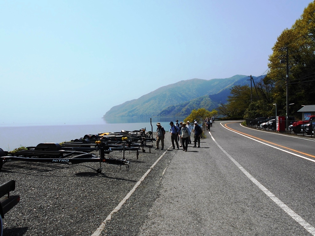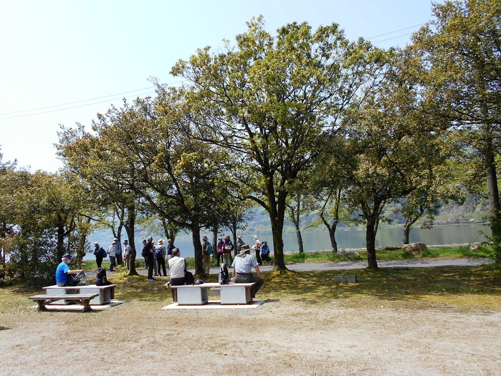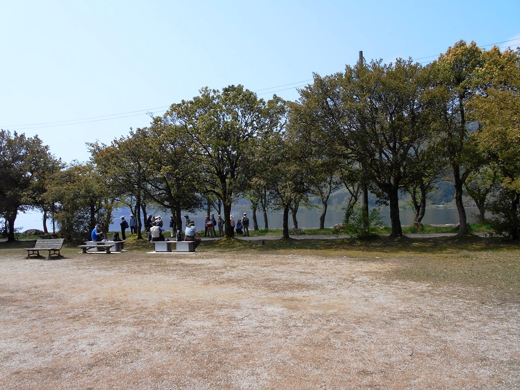 ・奥びわ湖の湖岸を40分程歩き昼食場所に到着する。
