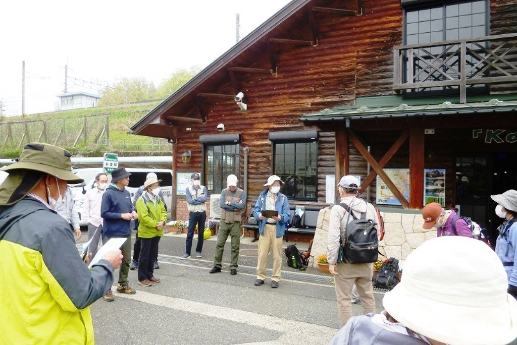 ・JR湖西線永原駅駅前に集合(10:00)「びわ湖線山科周り」と「びわ湖線米原周り」で集合される方々が集まりました。