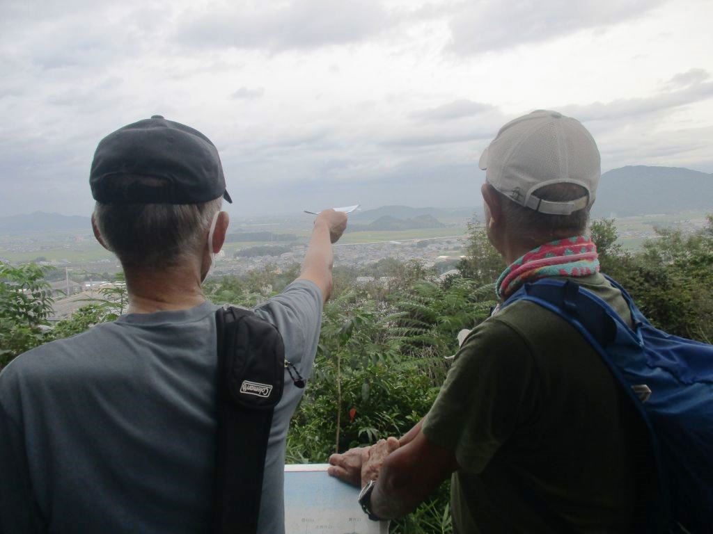 ○11:35 瓶割山城跡の広場(郭)に到着し、雪野山と街並みや琵琶湖を望みながら昼食を摂る。