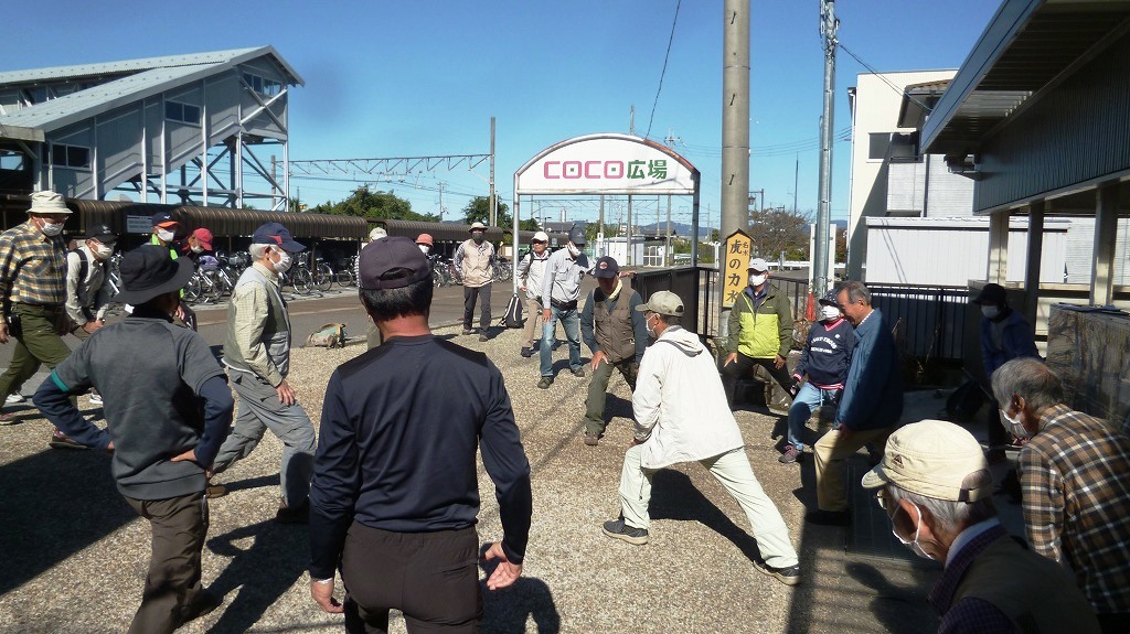 ・JR北陸線「高月駅東口」に集合 快晴 会長挨拶、コース案内、準備体操。