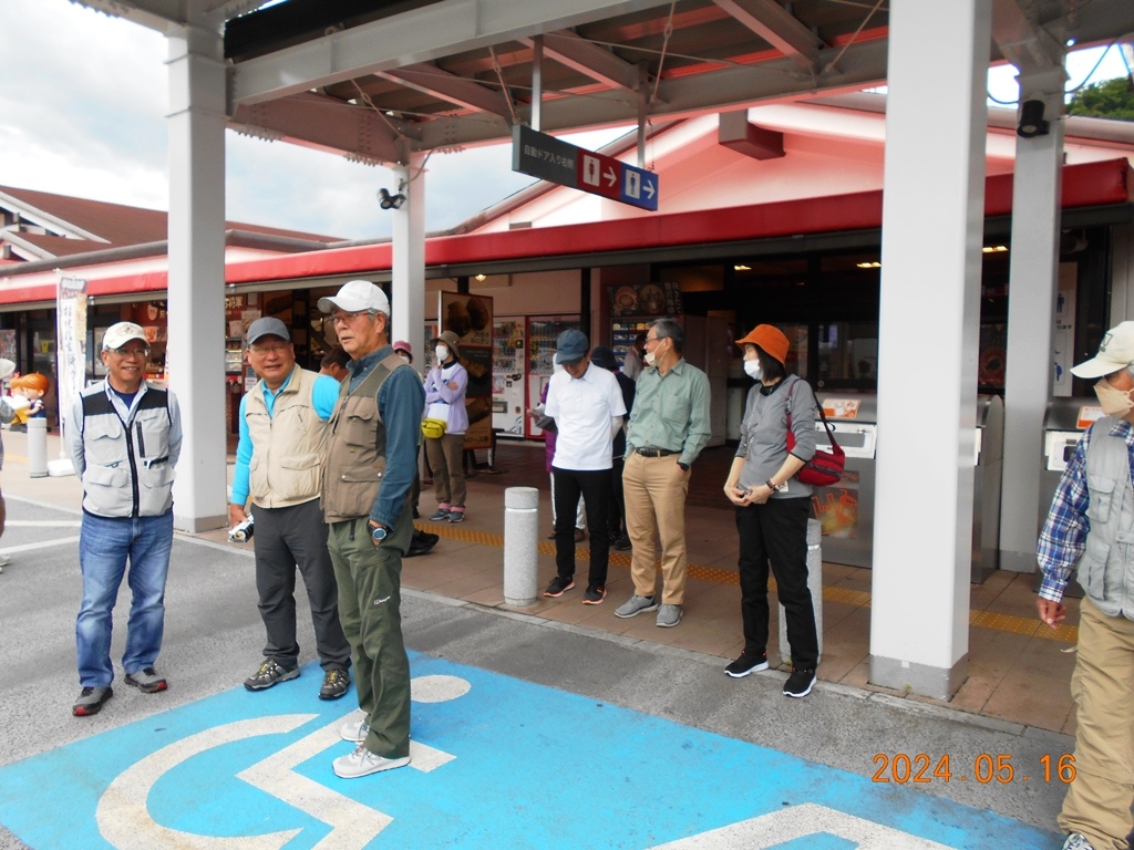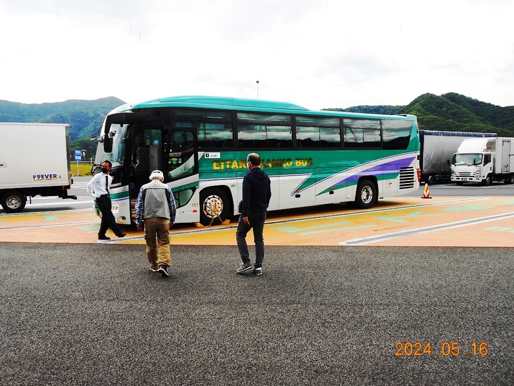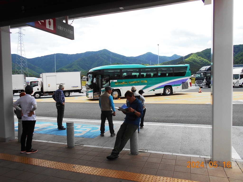 ○8:00 南草津駅西口28名、8:45八日市IC1名、9:10多賀SA4名合計32名で目的地に向かう。
