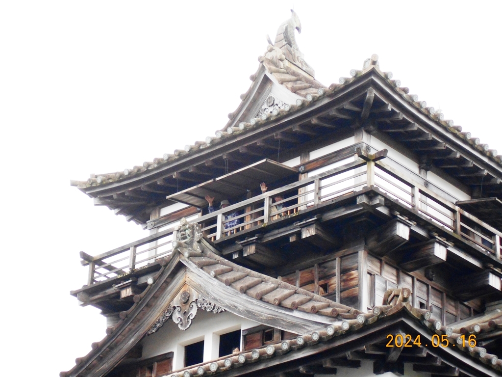〇急な階段を登り天守閣のから城下町をを眺める。
