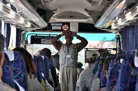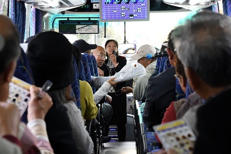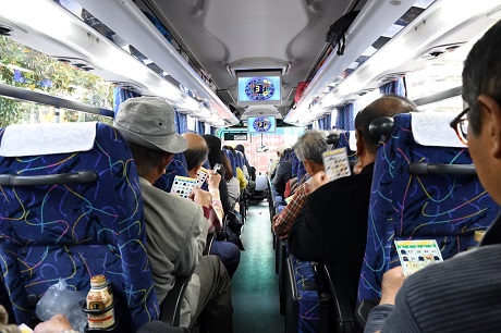 - りのバス車内で恒例のビンゴゲーム(1号車)