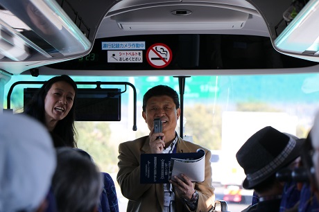 - 支部長の植木さんから参加のお礼と挨拶(1号車)