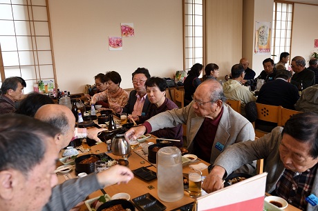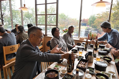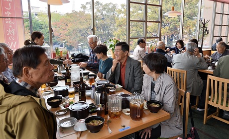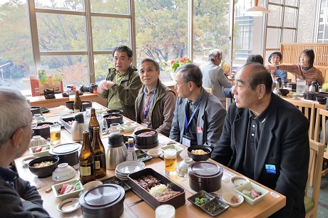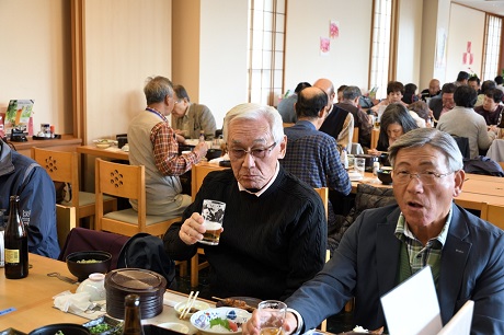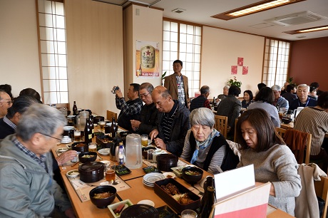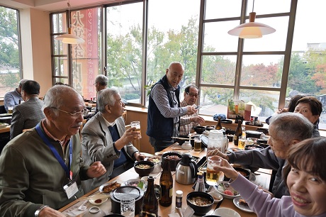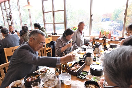 ・昼食会場のサッポロビール名古屋「浩養園」には定刻の10分遅れで到着。