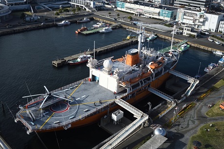 - 南極観測船「ふじ」を上から見る